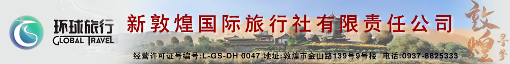 敦煌市新敦煌國(guó)際旅行社有限責(zé)任公司 敦煌市新敦煌國(guó)際旅行社有限責(zé)任公司,創(chuàng)建于2013年2月,是國(guó)家旅游局批準(zhǔn)、工商主管部門(mén)注冊(cè)的國(guó)際旅行社。主要經(jīng)營(yíng)入境旅游、國(guó)內(nèi)旅游、會(huì)議會(huì)展等旅游接待業(yè)務(wù)...【詳情】